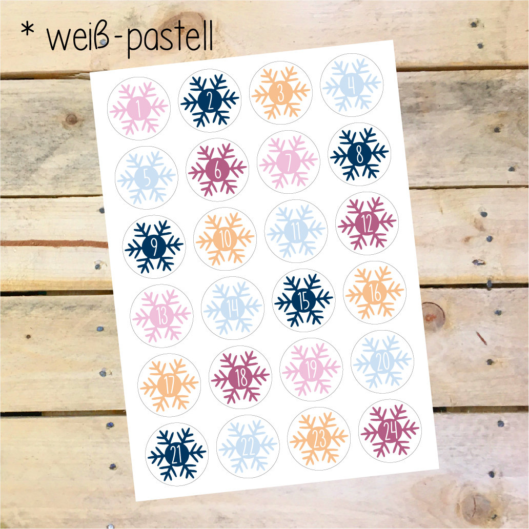 In this set you will receive 24 stickers with the numbers 1 to 24 for your homemade Advent calendar.